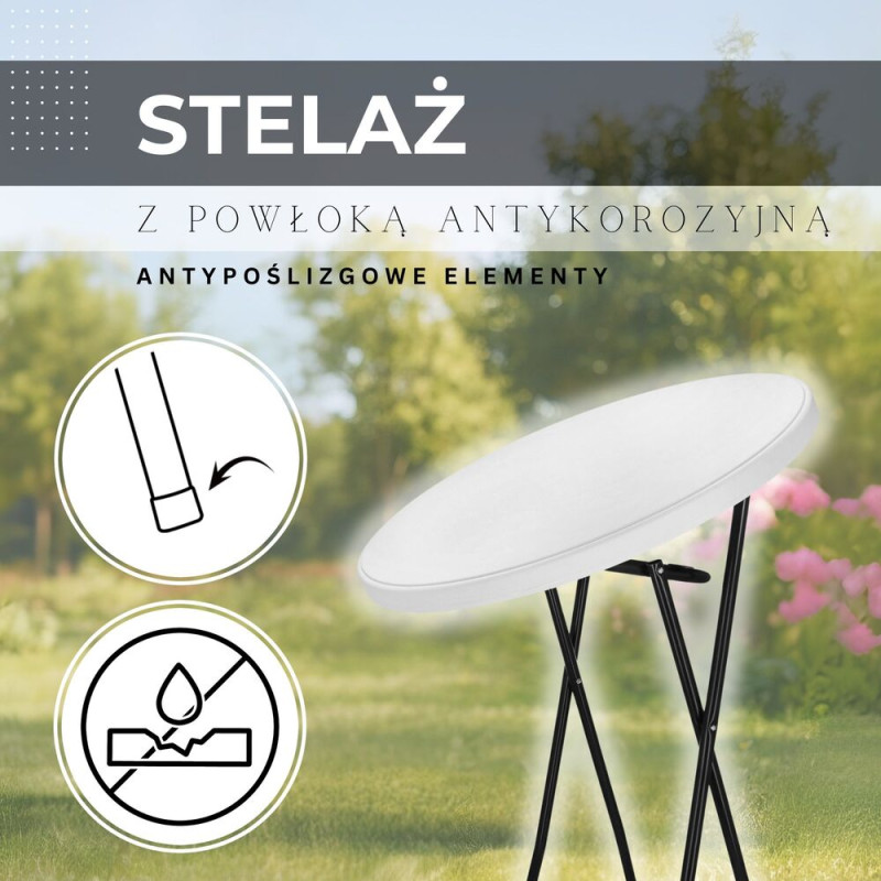 Základní informace: Značka: Springos®. Materiál: HDPE, kov. Barva: bílý top, černý rám. Typ: cateringový stůl, banketový stůl. Horní tvar:...