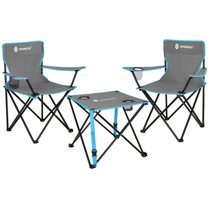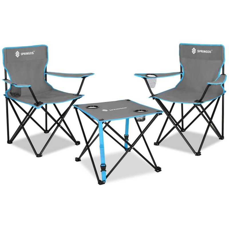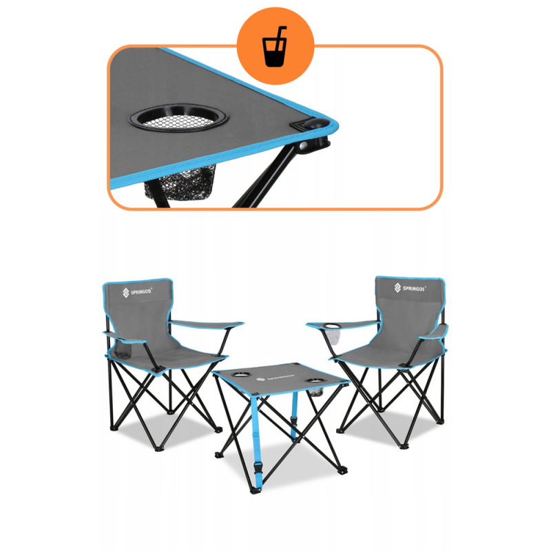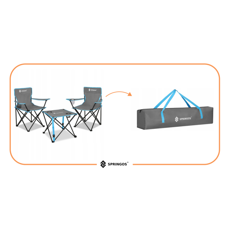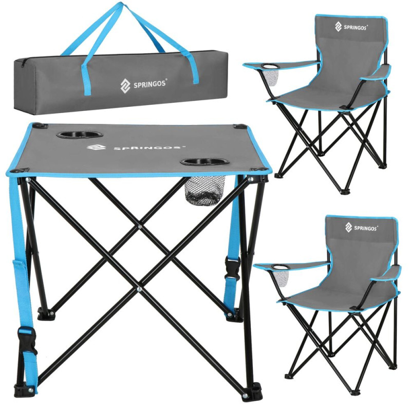 Základní údaje: Značka: Springos®. Materiál: kov, polyester. Barva: šedá, modrá, černá. Maximální nosnost: 20 kg - stůl, 120 kg - židle. Sada...