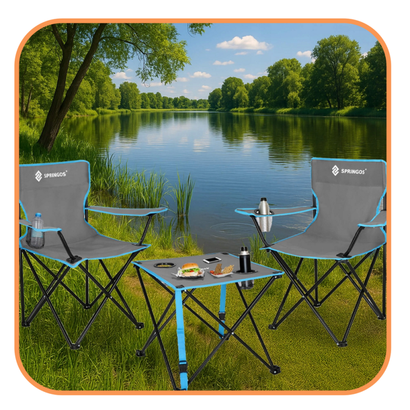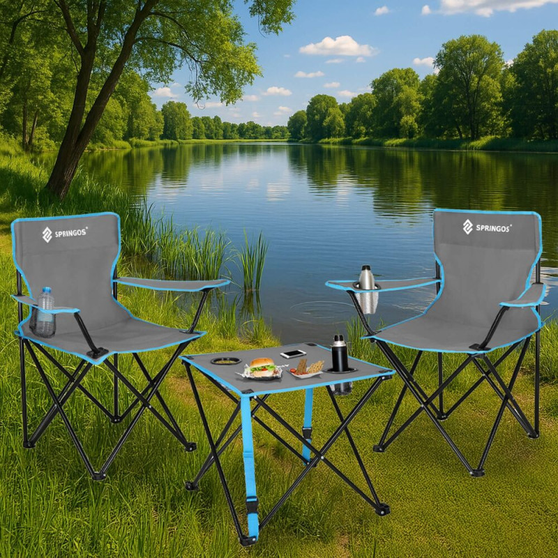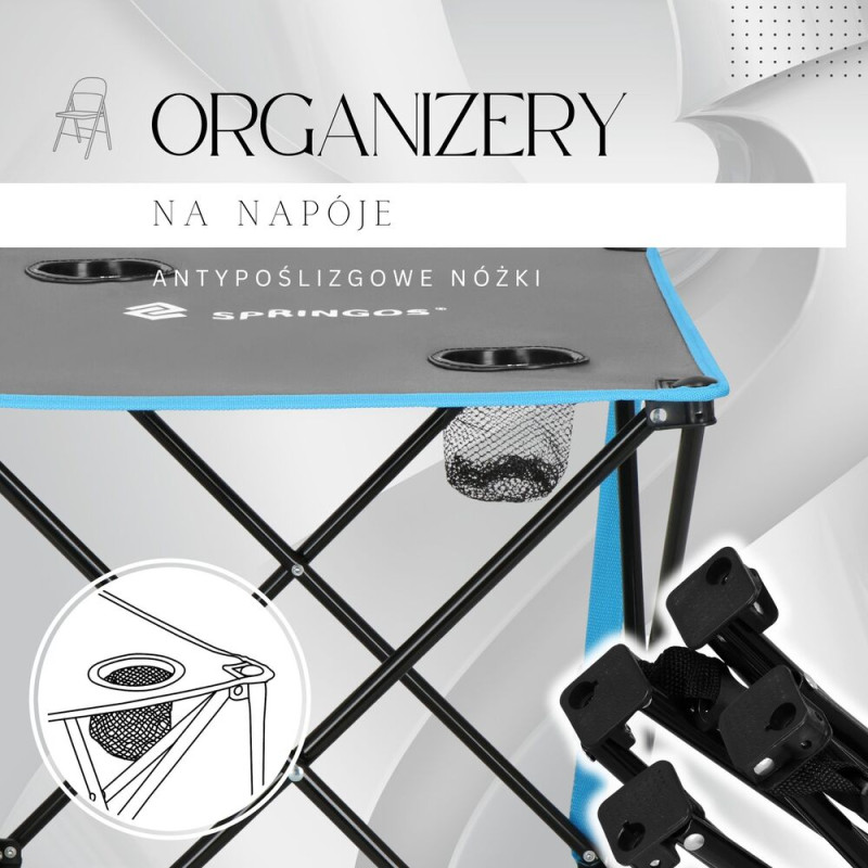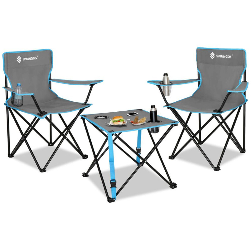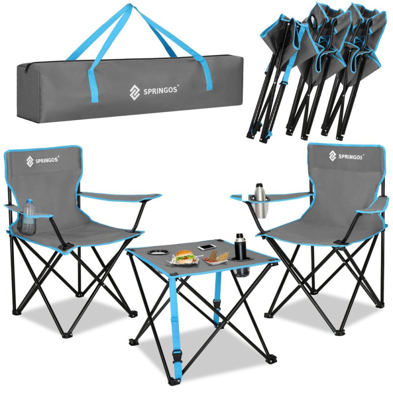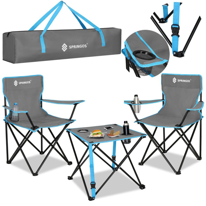 Základní údaje: Značka: Springos®. Materiál: kov, polyester. Barva: šedá, modrá, černá. Maximální nosnost: 20 kg - stůl, 120 kg - židle. Sada...