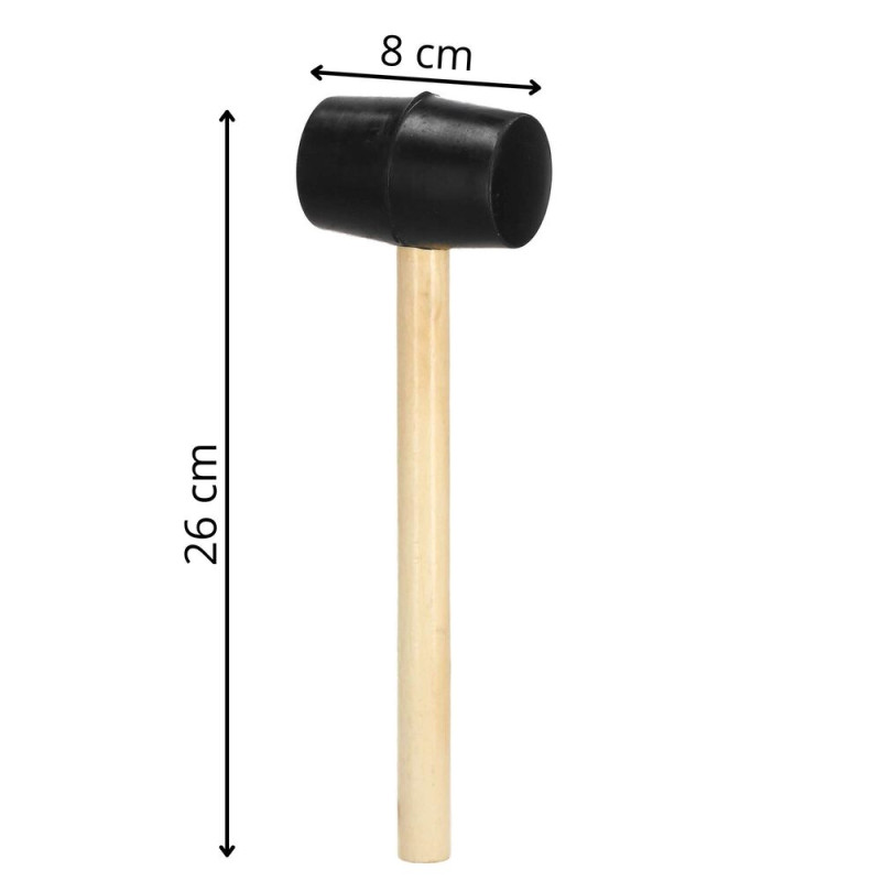Základní údaje: materiál: dřevo / guma. barva: hnědá + černá. Rozměry: celková délka: 26 cm. šířka hlavy: 8 cm. tloušťka hlavy: 4,5 cm. průměr...