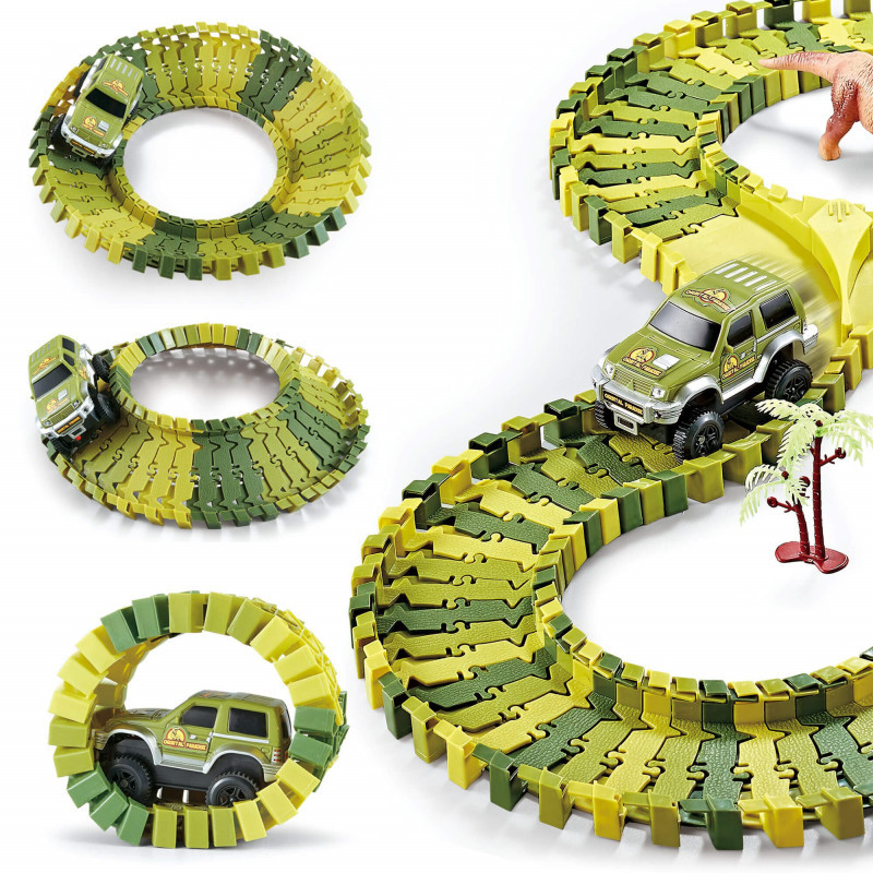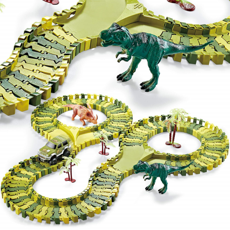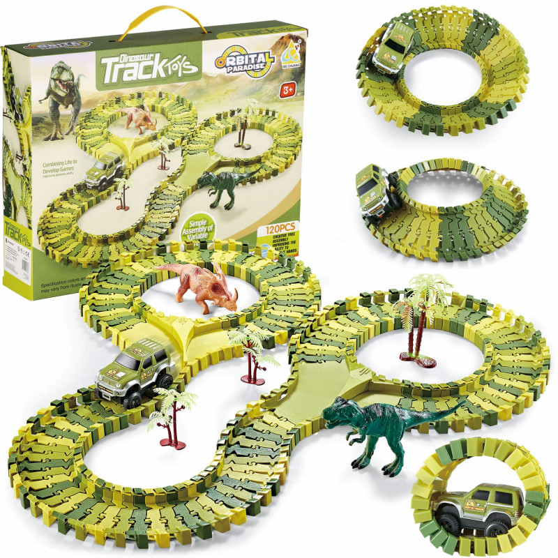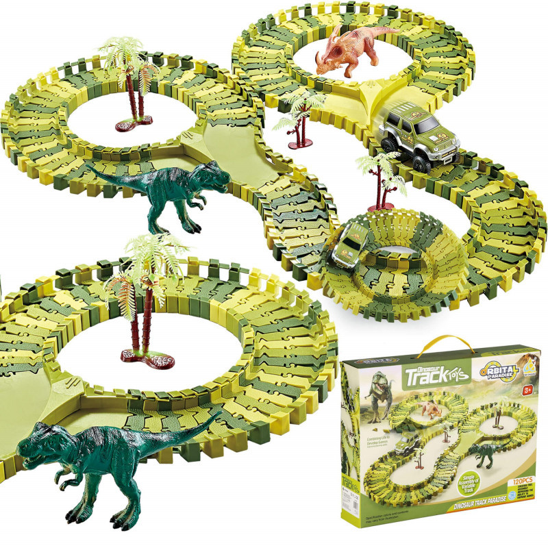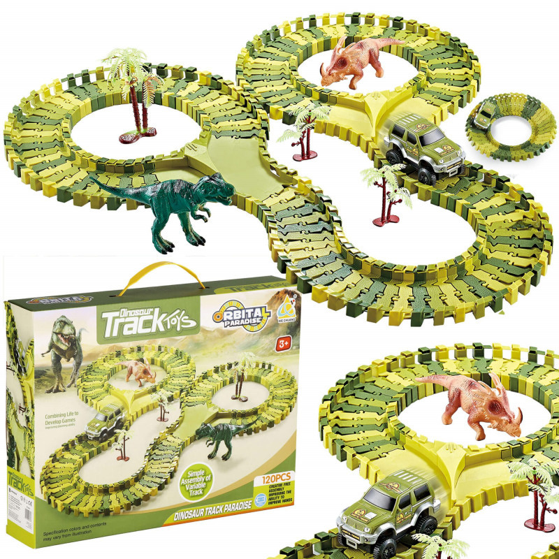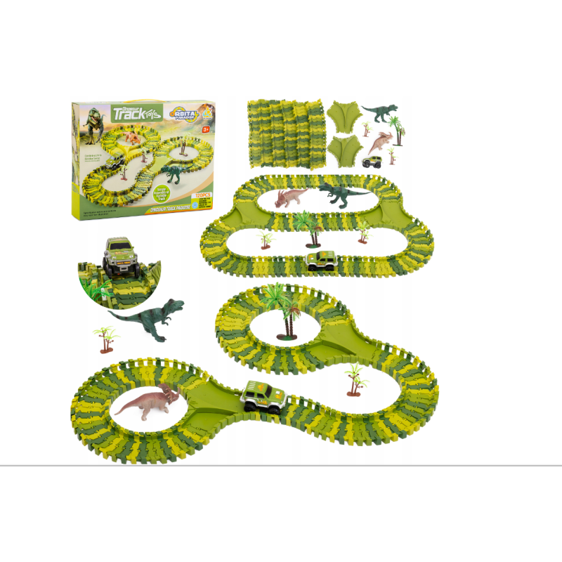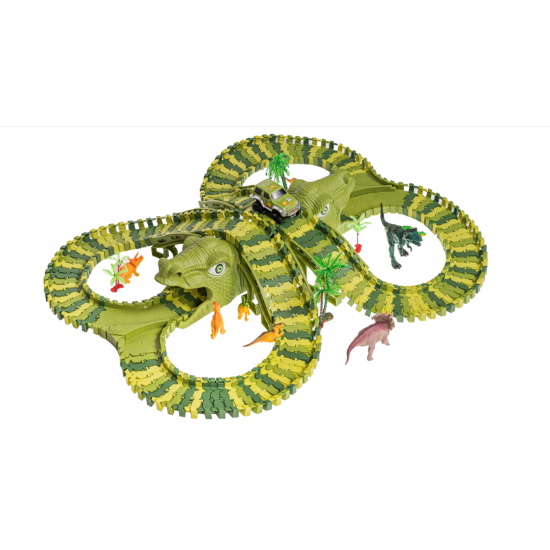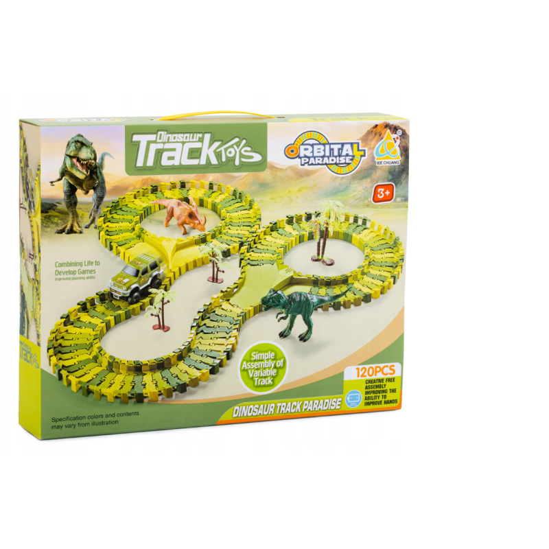 Dětská stavebnice pro každého malého nadšence dinosaurů a aut. Springos Dinopark je skvělá forma zábavy. Vezměte své dítě na vzrušující cestu do úžasného dinoparku. Vytvořte si svůj Jurský park a projeďte ho parádním teréním autem! Stavebnice umožnuje různé konfigurace tratí, měníte jejich tvar, přemísťujete figurky dinosaurů a palem. Hra učí kreativitě a vynalézavosti, rozvíjí představivost dítěte. Jednoduše zábava pro celou rodinu.