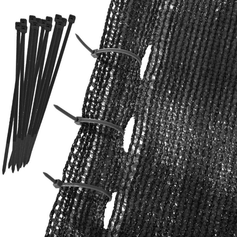 Zpevněné okraje s předpřipravenými oky zajišťují jednoduchou a rychlou instalaci na libovolné konstrukce, ať už na ploty, balkóny či terasy. V balení najdete 200 stahovacích pásků, které umožňují pevné a bezpečné upevnění bez potřeby dokupovat další příslušenství.