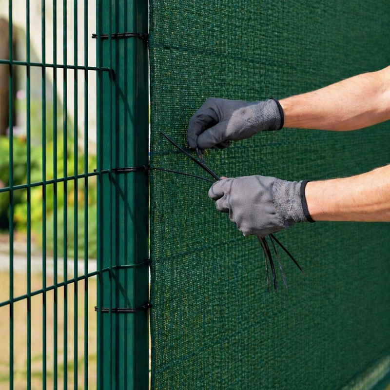 Zpevněné okraje s předpřipravenými oky zajišťují jednoduchou a rychlou instalaci na libovolné konstrukce, ať už na ploty, balkóny či terasy. V balení najdete 50 stahovacích pásků, které umožňují pevné a bezpečné upevnění bez potřeby dokupovat další příslušenství.
