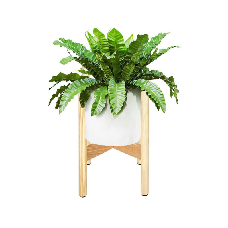 Stojan má stabilní a masivní dřevěnou konstrukci, takže poskytne vaším květinám dostatečnou oporu. Samolepící plstěné podložky pak pomůžou, abyste nepoškrábali podlahu. Design je vhodný také pro rozvětvené květiny nebo jen dlouhé visící listy.