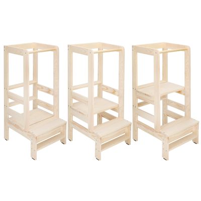 Rostoucí stolička typu Kitchen Helper umožňuje dítěti bezpečně se zapojit do činností v kuchyni i domácnosti. Nastavitelná ve 3 výškových stupních (19,5 / 32,5 / 50,5 cm), takže roste spolu s dítětem. Vyrobena z borovicového dřeva, stabilní konstrukce s nosností až 100 kg. Přírodní provedení vhodné k nátěru. Dodáváno v demontu včetně nářadí. Vhodná od 1 roku. Rozměry 38×44×90 cm.