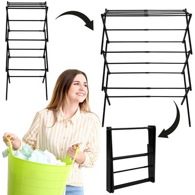 Kompaktní skládací stojan s více úrovněmi a odolnou kovovou konstrukcí. Nabízí dostatek prostoru pro zavěšení textilu a díky lehkému provedení se snadno přenáší i skladuje. Je ideální pro sušení prádla v interiéru, na balkoně nebo v menších prostorách a pomáhá efektivně využít dostupné místo.