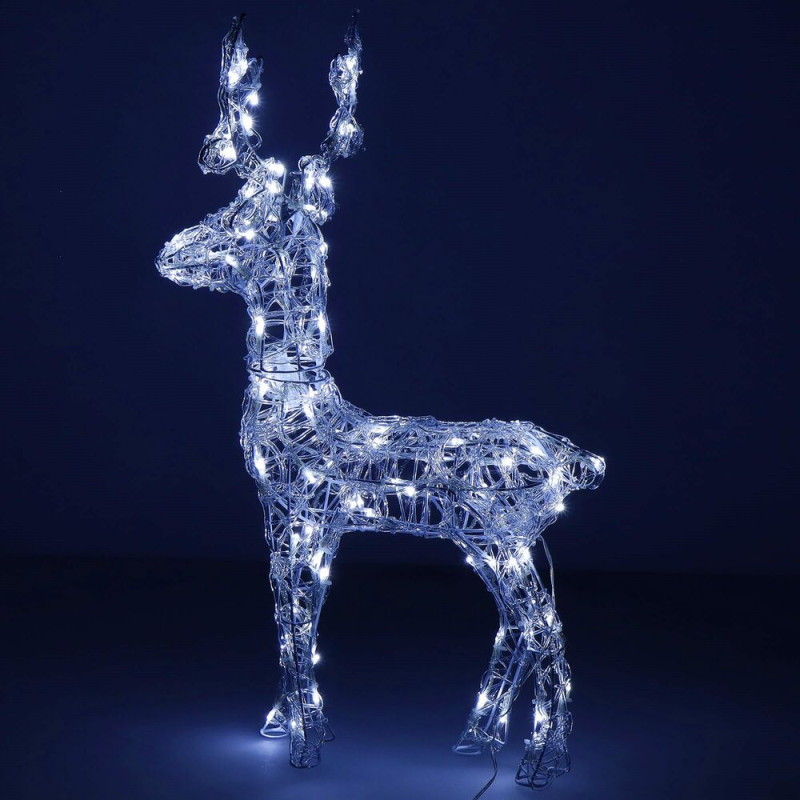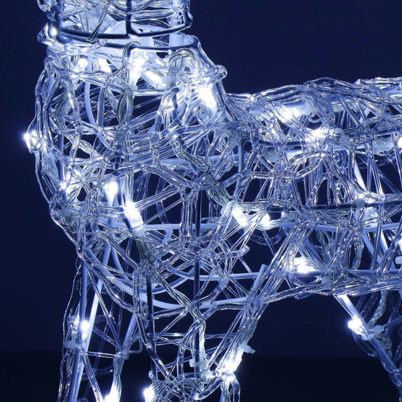 Majestátní sob se vztyčenou hlavou, vysokým parožím a konstrukcí zdobenou výpletem. Úžasná 3D světelná dekorace vhodná pro vnitřní i venkovní použití, voděodolné provedení, krytí IP44. Úsporné diody, časovač, barva studená bílá. Délka 42 cm, 100 LED, napájecí kabel 2,8 m.