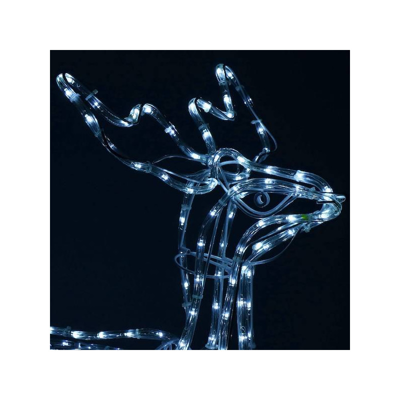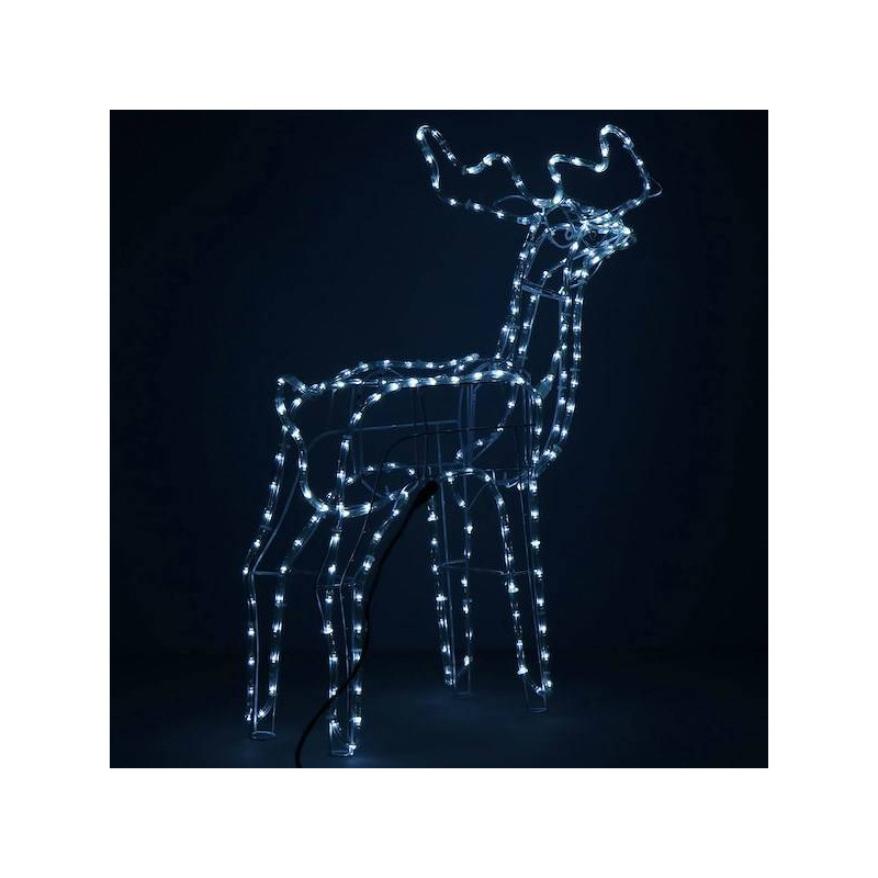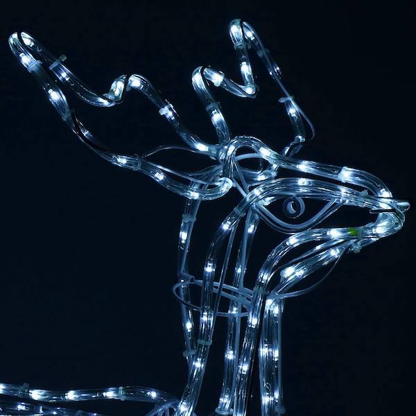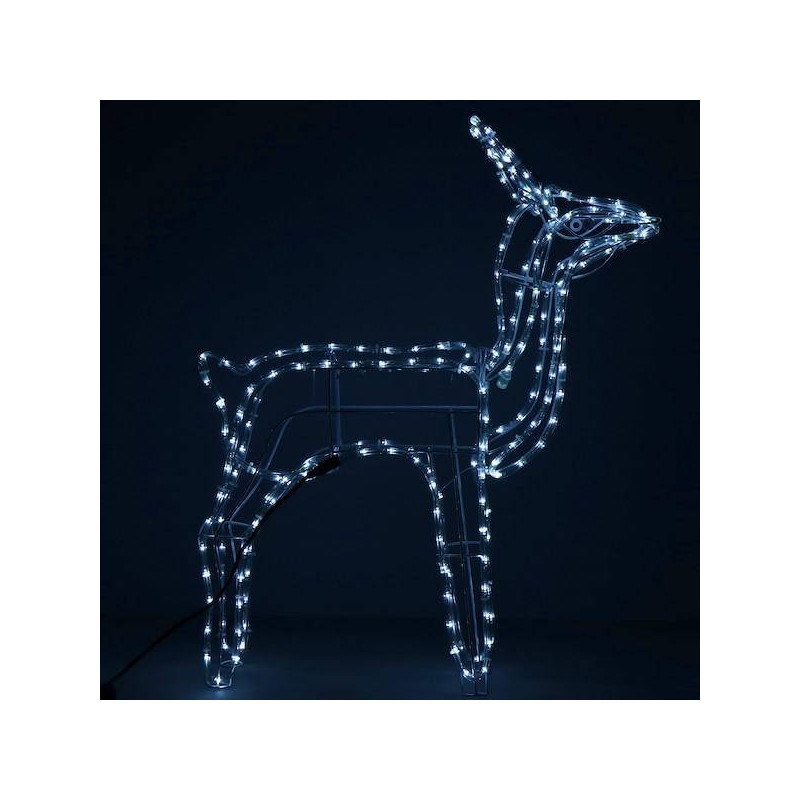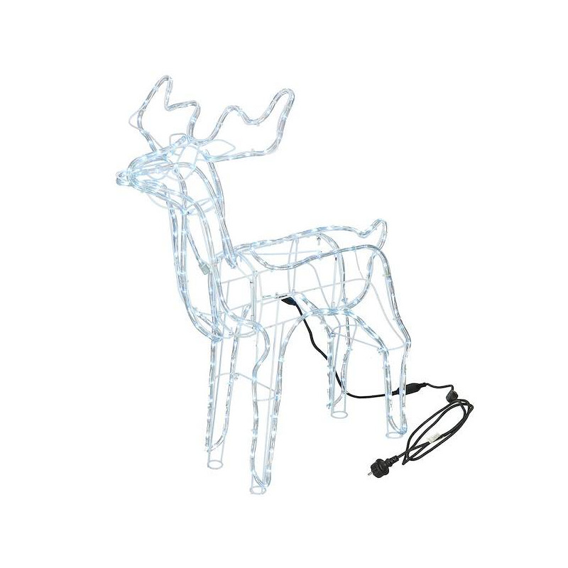 Vysoký sob s mohutným parožím a vztyčenou hlavou. Úžasná 3D světelná dekorace vhodná pro vnitřní i venkovní použití, voděodolné provedení, krytí IP44. Úsporné diody, barva studená bílá. Výška 90 cm, 216 LED, napájecí kabel 2 m.