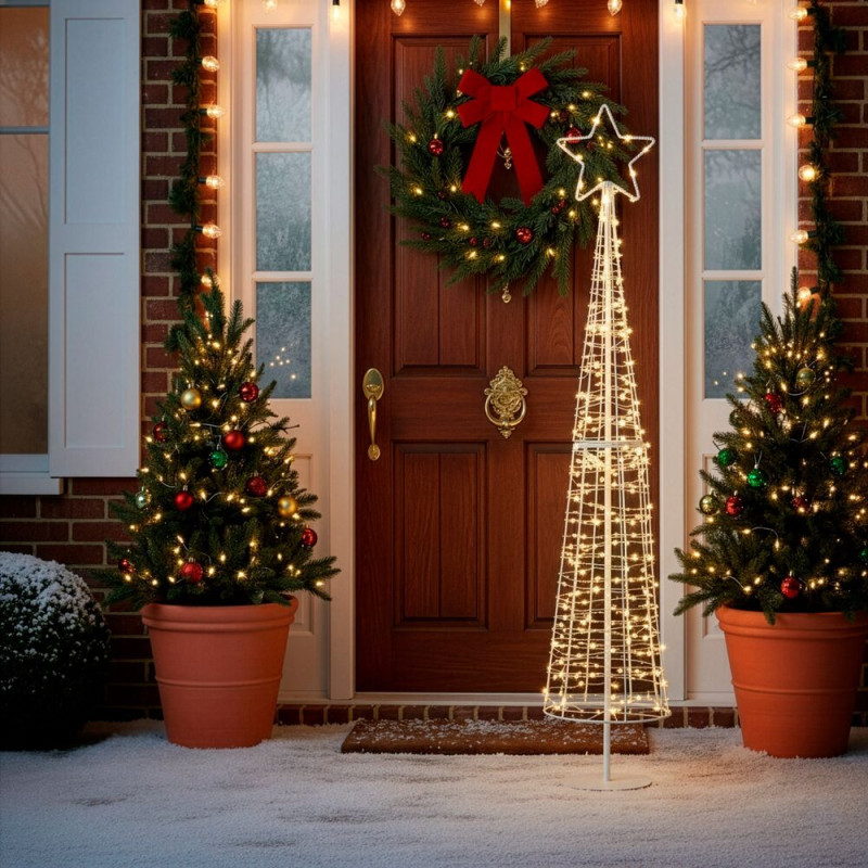 Stromek je vyroben z odolné kovové konstrukce, která zajišťuje stabilitu a dlouhou životnost. Energeticky úsporné LED osvětlení umožňuje dlouhodobé použití bez vysoké spotřeby energie. Díky univerzálnímu designu a kvalitnímu provedení je ideální pro každoroční vánoční výzdobu doma i venku.