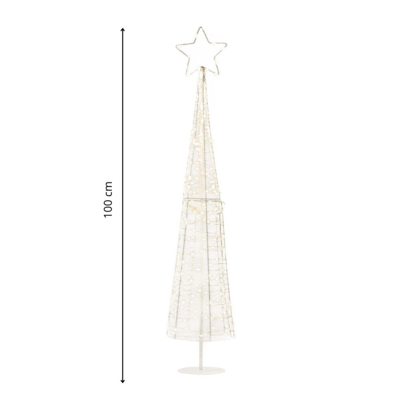 LED vánoční stromek 100 cm 250LED teplá bílá je stylová dekorace, která vytvoří příjemnou a slavnostní atmosféru. Díky 250 LED diodám s teplým bílým světlem poskytuje rovnoměrné a elegantní osvětlení. Dekorativní hvězda na vrcholu a moderní konstrukce z něj činí výrazný prvek vhodný ke vchodu, na terasu nebo do interiéru.