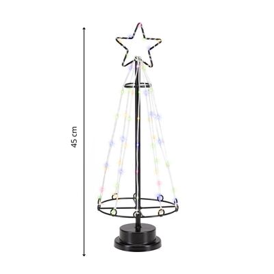 Dekorativní LED stromek s barevným osvětlením. Slouží k vytvoření příjemné vánoční atmosféry v interiéru. Vhodný na stůl, polici nebo komodu. Energeticky úsporné a bezpečné osvětlení pro každodenní použití během svátků. Výška 45 cm, 80 LED, krytí IP20.