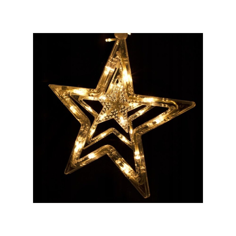 LED světelná záclona s překrásnými hvězdami a 8 světelnými efekty. Adaptér na bezpečné napětí, ultra úsporné led diody, transparentní kabel. Vnitřní i venkovní použití, voděodolné provedení, krytí IP44. Rozměry světelné části 2x0,9 m, napájecí kabel 3 m. Barva teplá bílá, 138 led.