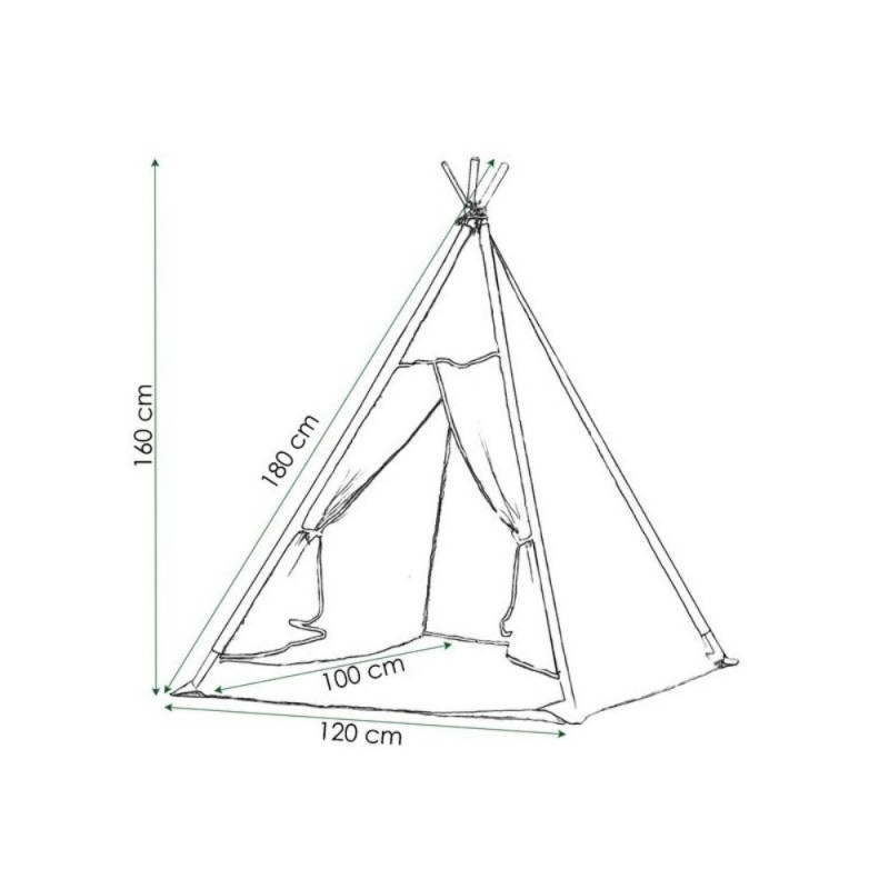 Stylový dětský týpý stan vytvoří útulné místo na hraní i odpočinek v pokojíčku nebo na zahradě. Součástí je měkká podložka a velký polštář pro maximální pohodlí. Uzavíratelný vstup dodává pocit soukromí, zatímco stabilní dřevěná konstrukce a bavlněná látka zajišťují bezpečné používání. Díky jednoduché montáži je stan rychle připraven k použití. Rozměry 120x100x160 cm.