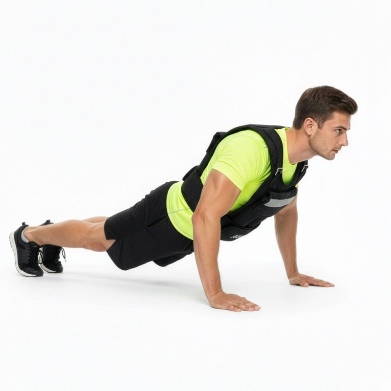 Posilovací vesta pro zvýšení intenzity tréninku a budování síly i vytrvalosti. Nastavitelná hmotnost až 20 kg. 6 vaků s litinovými kuličkami, 3 vpředu a 3 vzadu. Pevné a bezpečné uchycení. Nastavitelné ramenní i boční popruhy. Nastavitelná délka a obvod. Odolný polyester. Pohodlné nošení. Reflexní prvky pro lepší viditelnost.