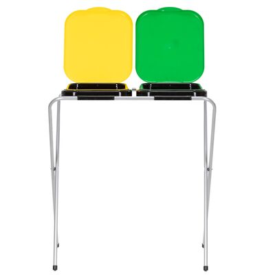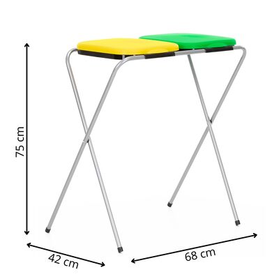 Praktické řešení pro přehledné třídění odpadu v domácnosti i venkovních prostorách. Dvě oddělené komory umožňují snadné rozdělení odpadu, barevné kryty usnadňují orientaci a zakrývají obsah pytlů. Lehká kovová konstrukce je stabilní, snadno přenositelná a díky protiskluzovým podložkám bezpečně stojí na různých površích. Výměna pytlů je rychlá a pohodlná.