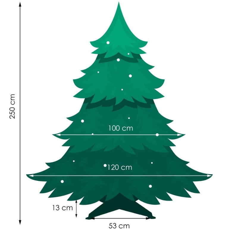 Umělý vánoční stromeček s realistickým vzhledem kavkazského smrku. Rozmanitost zakončení a detailní zpracování větviček, rovnoměrně rozložené jehličí, husté větvení bez mezer, přírodní zelená barva. Výška stromku 240 cm, spodní šířka 137 cm, průměr stojanu 75 cm.