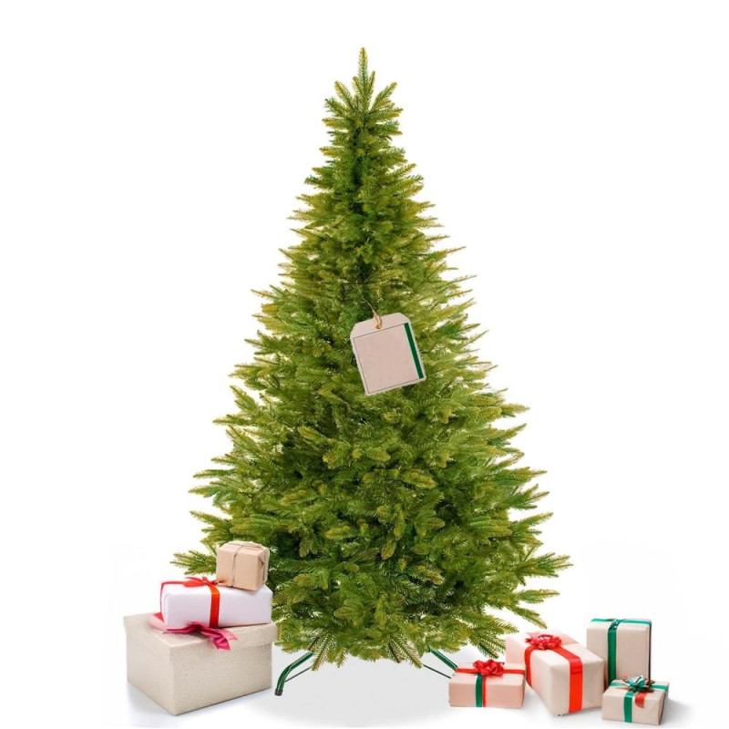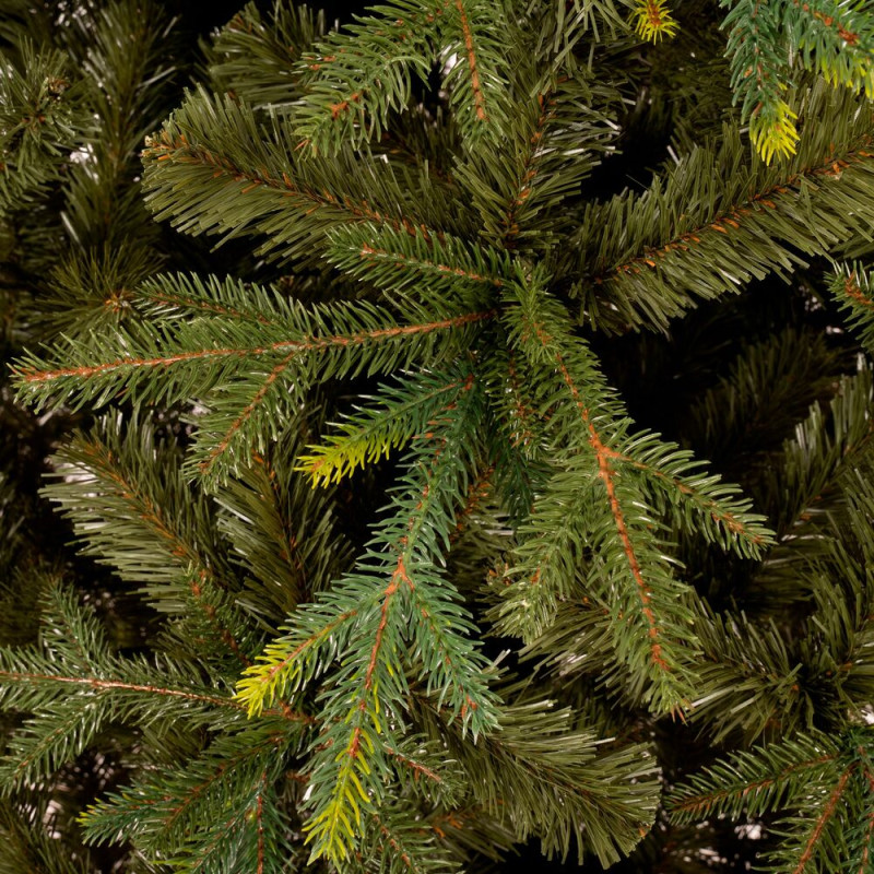 Umělý vánoční stromeček s přirozeně zeleným jehličím a jasně zelenými konci větviček věrně napodobuje mladé výhonky živého smrku. Díky ultra realistickému vzhledu, vysoké hustotě větví a detailnímu zpracování působí velmi přirozeně. Dvoubarevné jehličí z PVC fólie zajišťuje dokonalý efekt, větve lze tvarovat dle potřeby. Stabilitu poskytuje 4 ramenný kovový stojan. Stromek je odolný, snadno se skládá a je šetrný k přírodě. Výška 220 cm, spodní šířka 132 cm, průměr stojanu 65 cm.