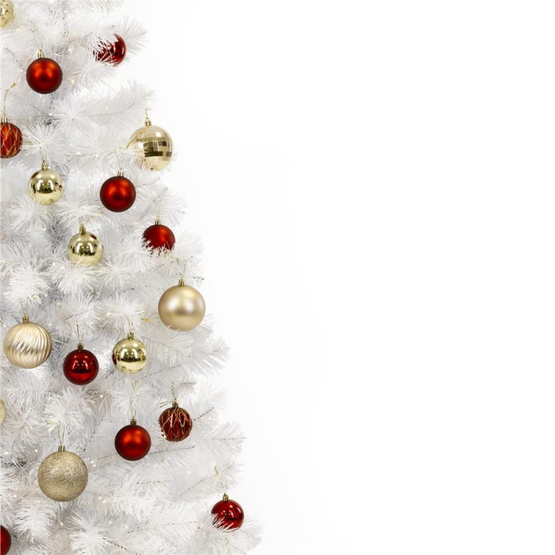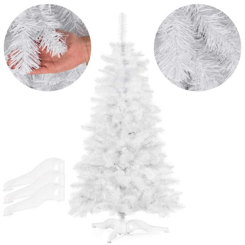 Umělý vánoční stromeček v čistě bílé barvě přinese do interiéru kouzlo zimní pohádky. Díky ultra realistickému vzhledu a vysoké hustotě větví působí bohatě a slavnostně. Jehličí z bílé PVC fólie je rovnoměrně rozloženo a umožňuje modelování větví pro ideální tvar. Stabilitu zajišťuje tříramenný stojan, stromek má odolnou konstrukci, snadno se skládá a je šetrný k životnímu prostředí. Výška 180 cm, spodní šířka 95 cm, průměr stojanu 65 cm.
