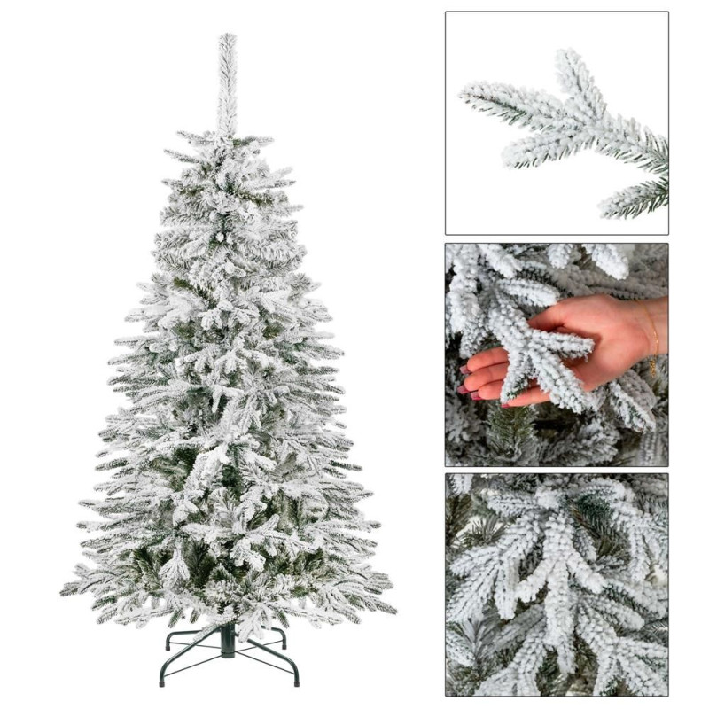 Umělý vánoční stromeček s bohatou vrstvou kvalitního sněhu, který neopadává, vytváří dokonalý zimní efekt. Kombinace dvoubarevné PE a PVC fólie věrně napodobuje skutečné jehličí a větve. Díky ultra realistickému vzhledu, vysoké hustotě větví a možnosti modelování působí jako živý. Stabilitu zajišťuje kovový čtyřramenný stojan, strom má odolnou konstrukci, snadno se sestavuje a je šetrný k přírodě. Výška 180 cm, spodní šířka 100 cm, průměr stojanu 55 cm.