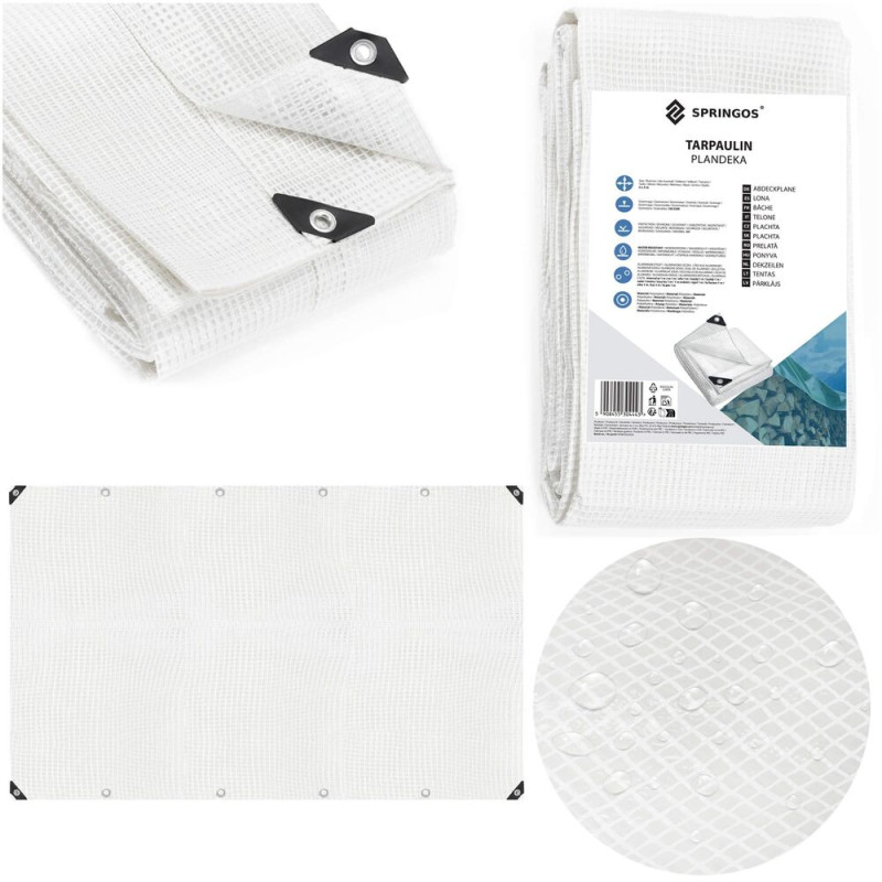 Základní údaje: Značka: Springos®. Materiál: polyethylen. Barva: průhledná bílá. Hmotnost na metr: 100 GSM. Očka: Hliníková, otvor 11 mm....