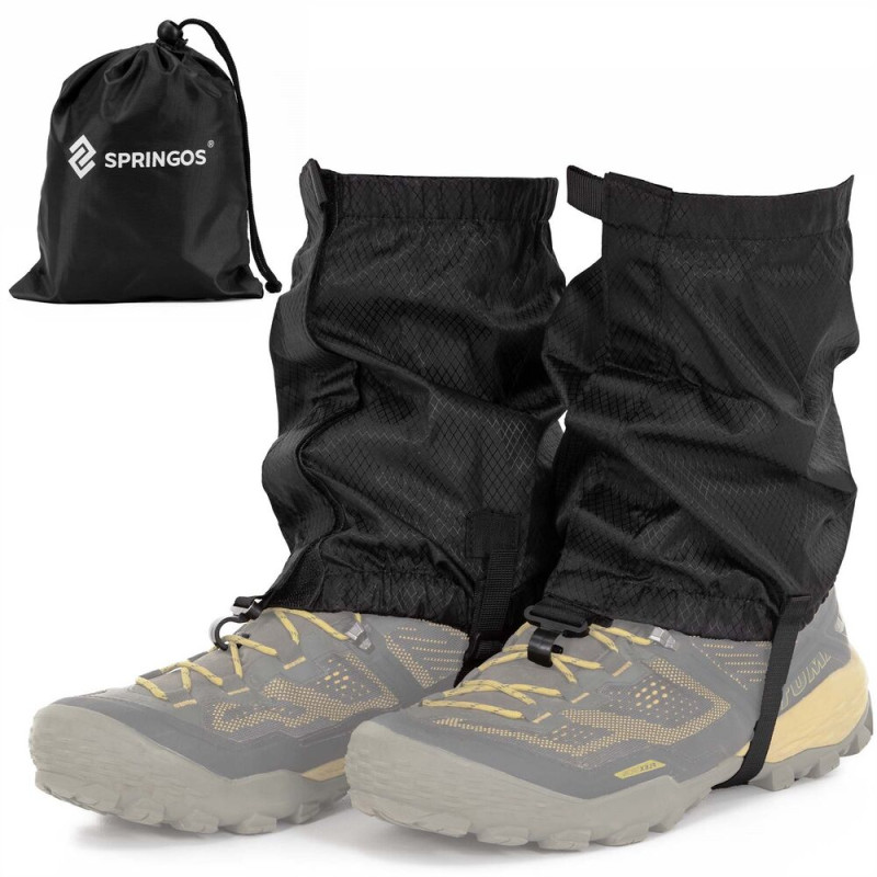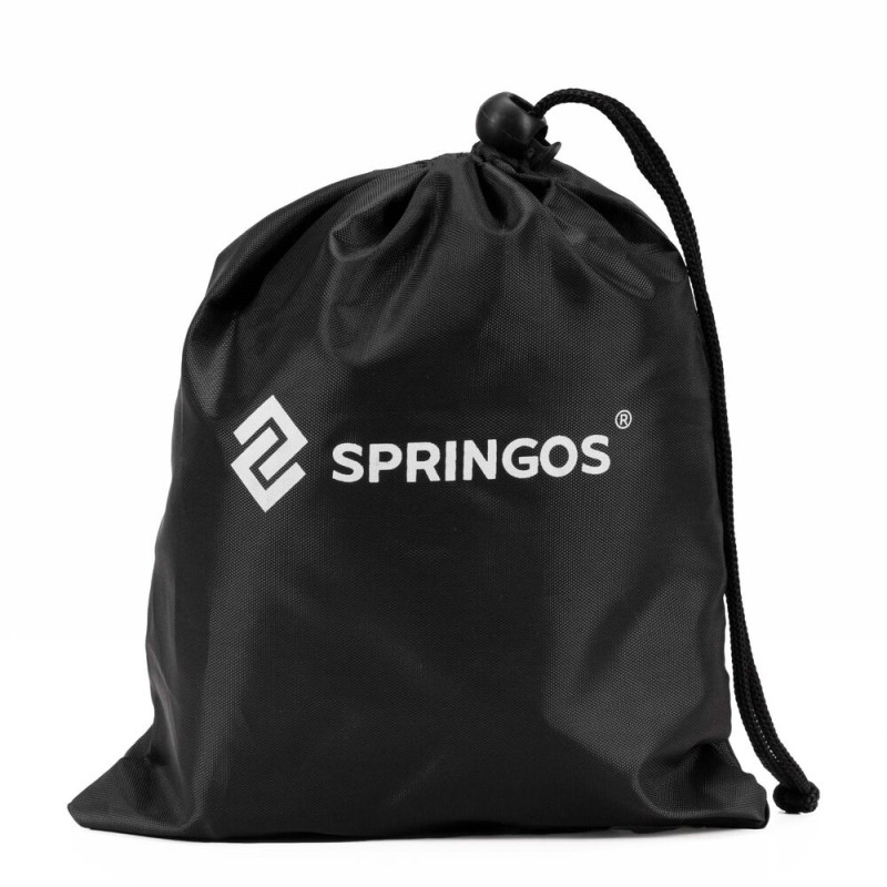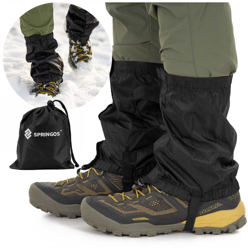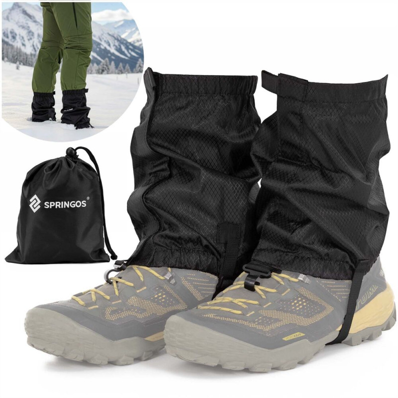 Základní informace: Značka: Springos®. Materiál: 100% polyester. Barva: černá. Počet dílků v sadě: 2. Velikost: univerzální. Typ zapínání: Suchý zip. Nastavitelný popruh na obuv. Háček pro připevnění ke tkaničkám. Potah se stahovací šňůrkou součástí balení. Rozměry: Obálka: 17 x 10 x 6 cm. Délka: 23 cm. Šířka horní části: 17 cm. Šířka dole: 13 cm. Šířka popruhu: 1,5 cm. Délka popruhu: 25 cm. Výška háčku: 2 cm. Vnitřní průměr háčku: 1 cm. Tloušťka háčku: 0,2 cm. Další informace: Obálka obsahuje logo Springos®. Návleky jsou vybaveny páskem pod botou, který usnadňuje správné umístění na noze, a také háčkem pro připevnění ke tkaničkám boty.. Pouze ruční mytí. Nebělit. Nesušit v sušičce. Nežehlit. Nečistit chemicky.