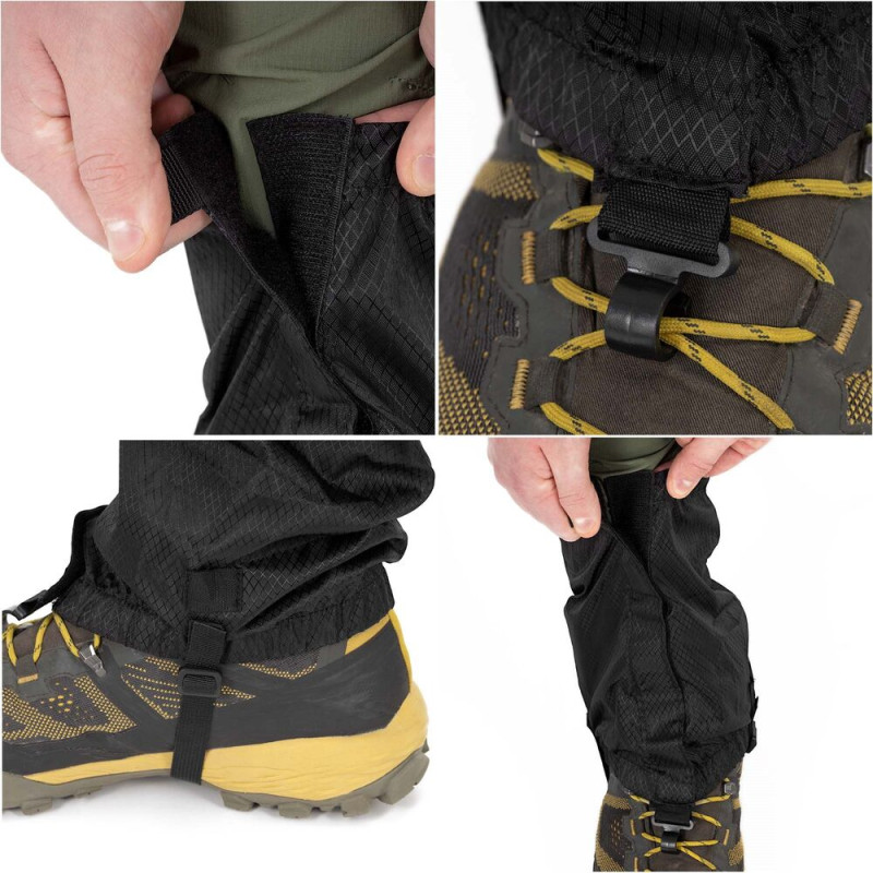• Návleky jsou vybaveny páskem pod botou, který usnadňuje správné umístění na noze, a také háčkem pro připevnění ke tkaničkám boty.