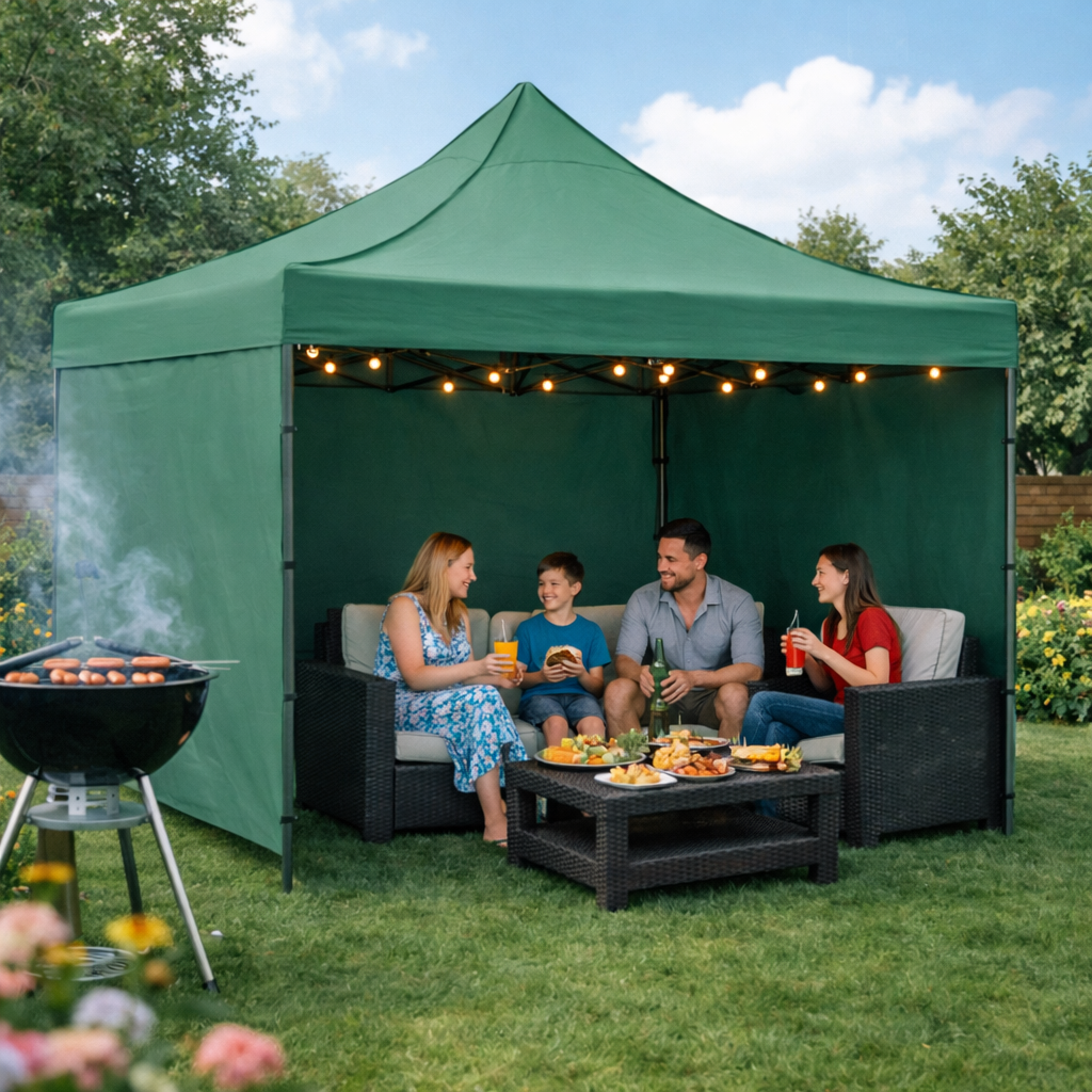 Párty stan pro vytvoření stínu a ochrany při venkovních aktivitách. Slouží k pohodlnému posezení na zahradě, terase, při kempování nebo rodinných akcích. Poskytuje úkryt před sluncem i větrem. Praktické řešení pro venkovní relaxaci.