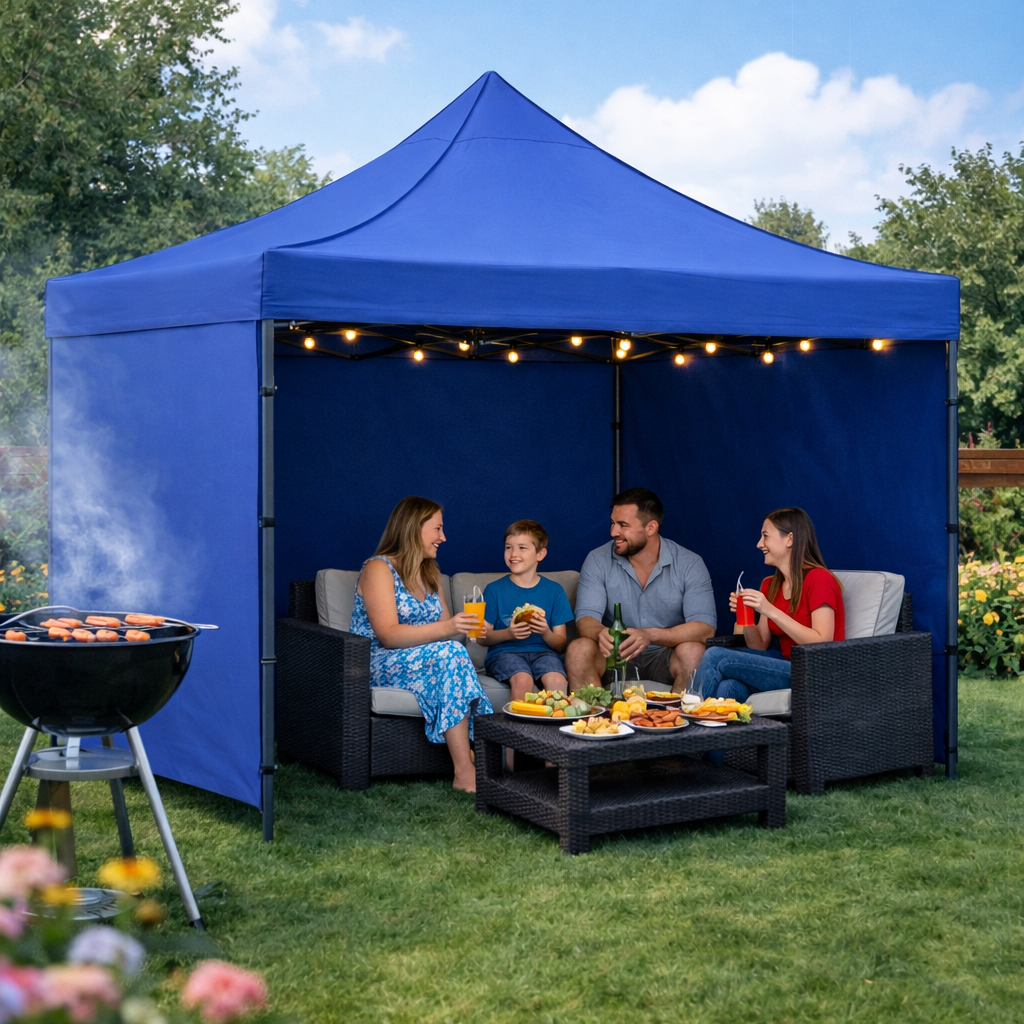 Párty stan pro vytvoření stínu a ochrany při venkovních aktivitách. Slouží k pohodlnému posezení na zahradě, terase, při kempování nebo rodinných akcích. Poskytuje úkryt před sluncem i větrem. Praktické řešení pro venkovní relaxaci.