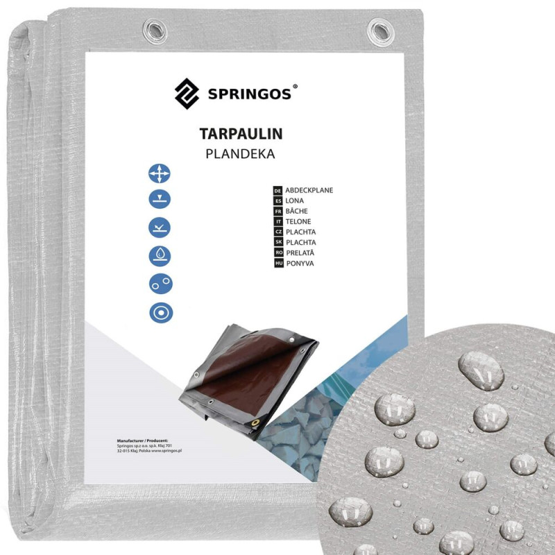 Krycí plachta s oky 6×8 m, 130 g PE SPRINGOS GA2185 šedá je ideální volbou pro zakrytí velkých ploch, materiálu, dřeva, strojů nebo zahradního vybavení. Odolný polyethylen zajišťuje spolehlivou ochranu proti dešti a vlhkosti, takže chráněné předměty zůstávají v bezpečí i při nepříznivém počasí. Díky velkému rozměru je vhodná pro široké spektrum využití v exteriéru i interiéru, včetně zakrytí jakéhokoliv materiálu.