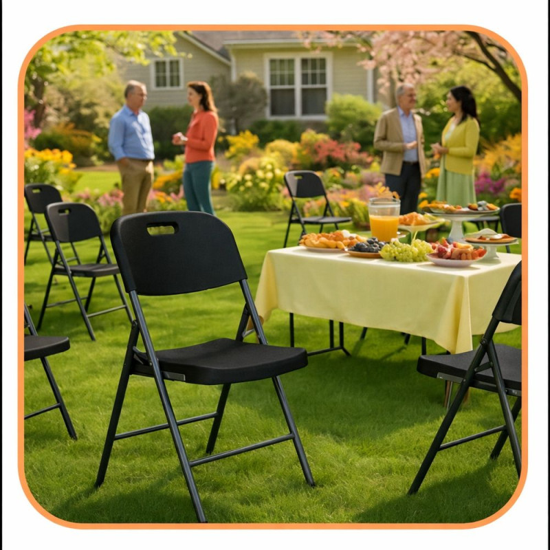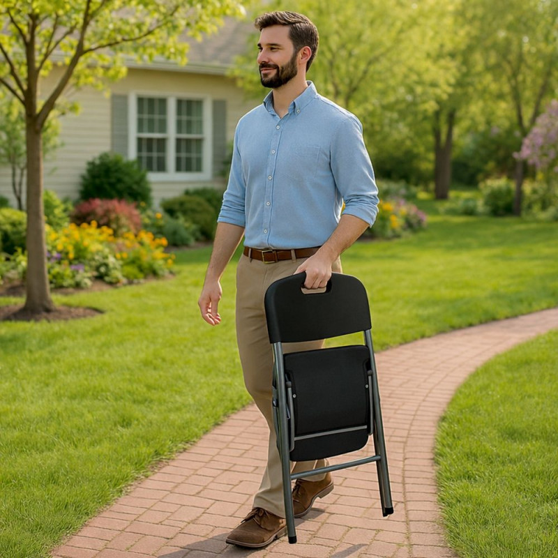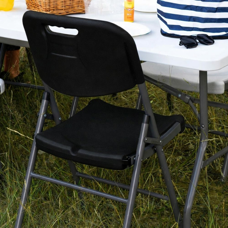 Skládací židle SPRINGOS BANQUET v černé barvě je vhodným řešením pro rodiny, které chtějí uspořádat perfektní místo pro rodinnou večeři, ať už na terase nebo na zahradě. Hodit se bude také na večírku, rautu nebo rodinném kempu. Kvalitní materiál, velká nosnost, stabilní a bezpečná konstrukce.