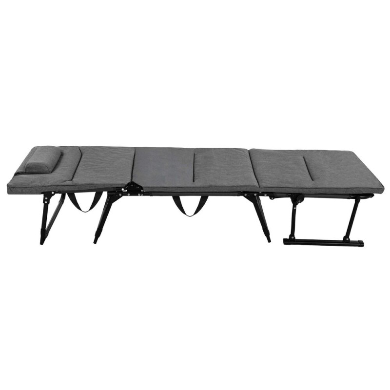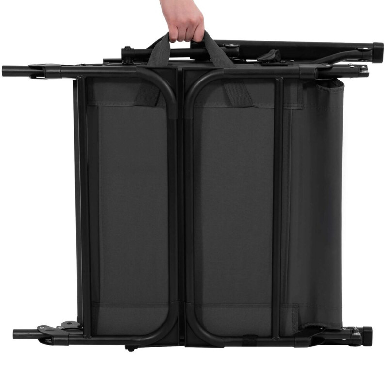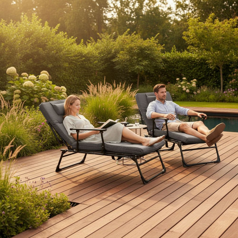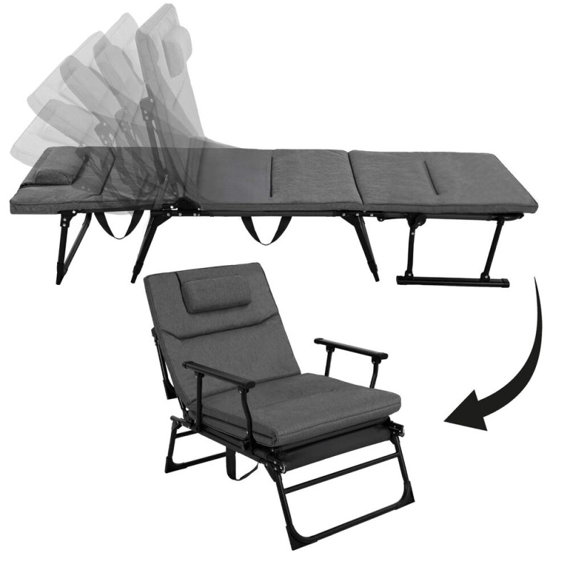 Velmi komfortní zahradní křeslo s funkcí lehátka a 5 nastavitelnými polohami opěradla zajistí maximální pohodlí při odpočinku. Silný podsedák, opěrka hlavy a zaoblené rukojeti poskytují vysoký komfort sezení i ležení. Stabilní kovová konstrukce, nosnost 120 kg, snadno složitelné a dvojité držadlo na přenášení dělají z tohoto křesla ideálního společníka na zahradu, balkon, terasu, ale i cestování.